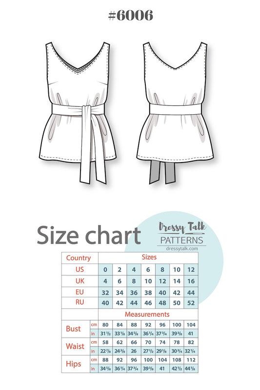 Belted V-neck Tank Top Pattern #6006