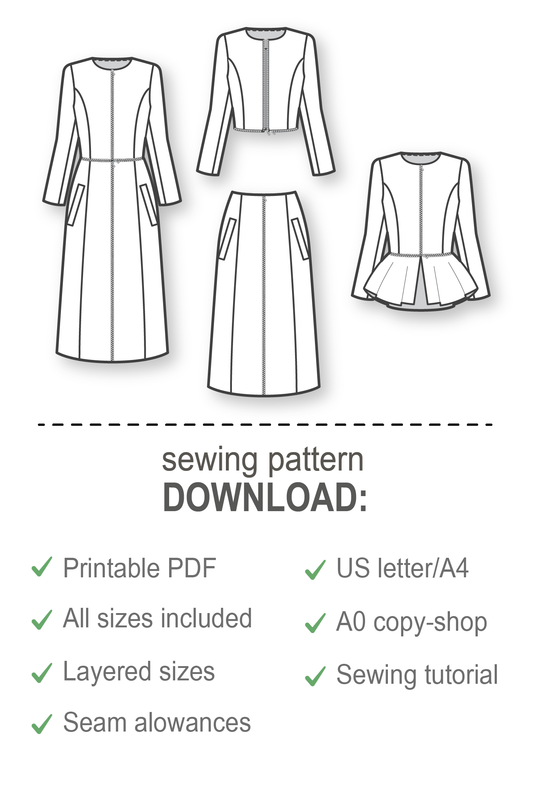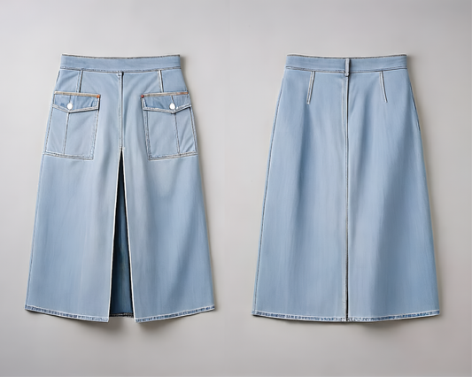 A-line box pleat denim skirt sewing pattern - Skirt pattern - PDF sewing pattern for women