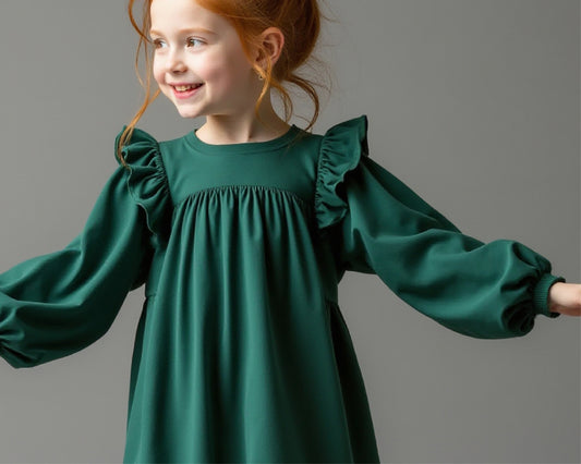 Girls A-Line Dress Sewing Pattern, DIY Long Puffed Sleeve Dress, Tiered Gathered Top, Beginner Friendly PDF for Kids