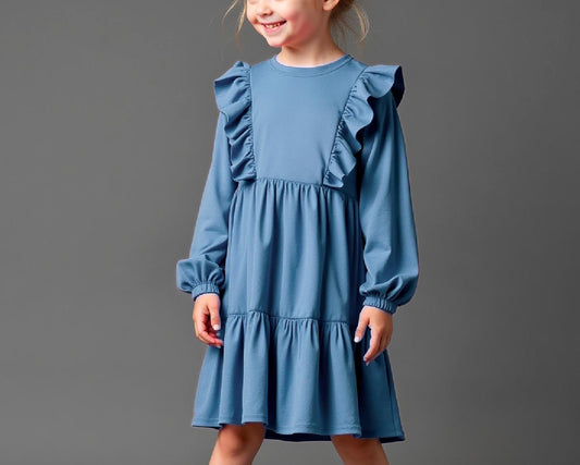Girls Tiered Dress Sewing Pattern, PDF DIY Knee Length Dress with Frills, Ruffle Hem Pullover for Special Occasions