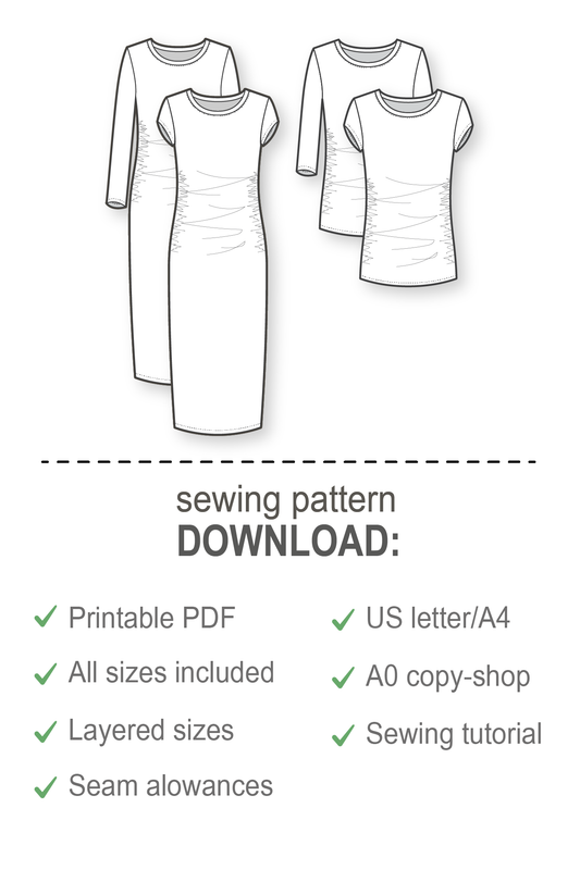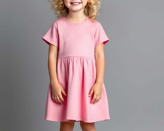 Girls T-Shirt Dress Sewing Pattern, Short Sleeve Gathered Waist Knee Length Dress, Easy DIY Beginner PDF for Kids and Toddlers