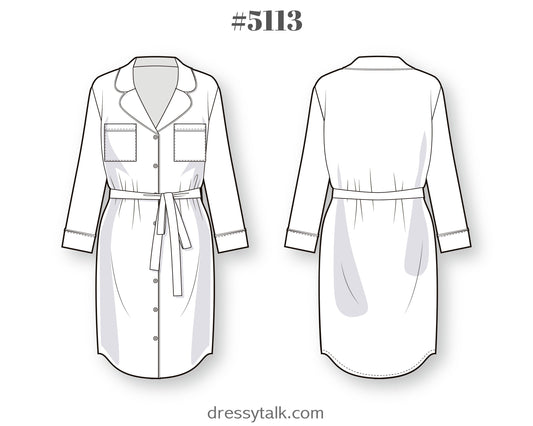 Button-down nightgown robe with cuffed long sleeve and optional belt - PDF sewing pattern for women