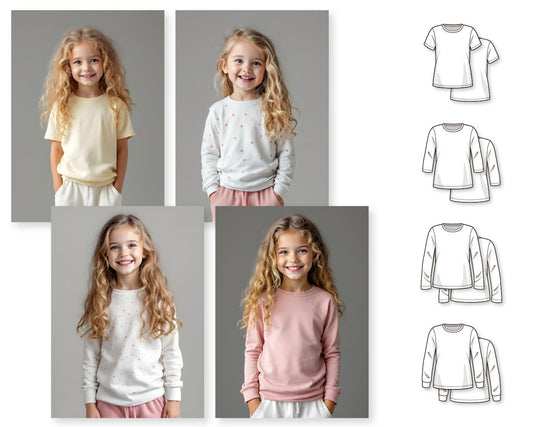 Kids T-Shirt PDF Sewing Pattern, Casual Top with Long, Short, and Cuffed Sleeves, Beginner Friendly Printable DIY Shirt for Girls and Boys