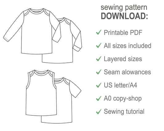 Baby girl or boy t-shirt 4 sleeve types long, long cuffed, short sleeve, sleeveless - Baby knit clothes PDF sewing pattern