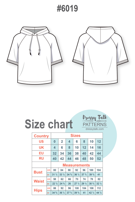 Regular fit raglan sleeve ruffled cropped sweatshirt hoodie - PDF sewing pattern for women