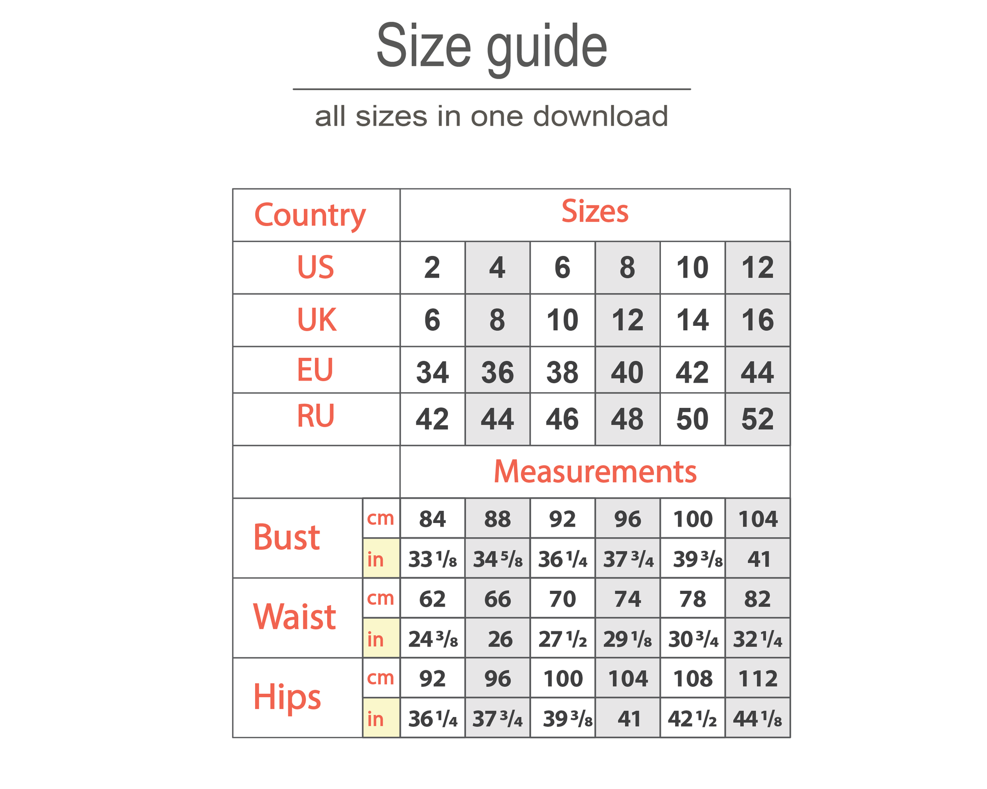 Making this pattern fit perfectly on you is very important for us. That's why the pattern is created for various heights. And it's not just about the length of the garment but an overall proportions! You will receive the sewing pattern for all sizes/heights in one download! Please find the size chart with body measurements in the gallery.