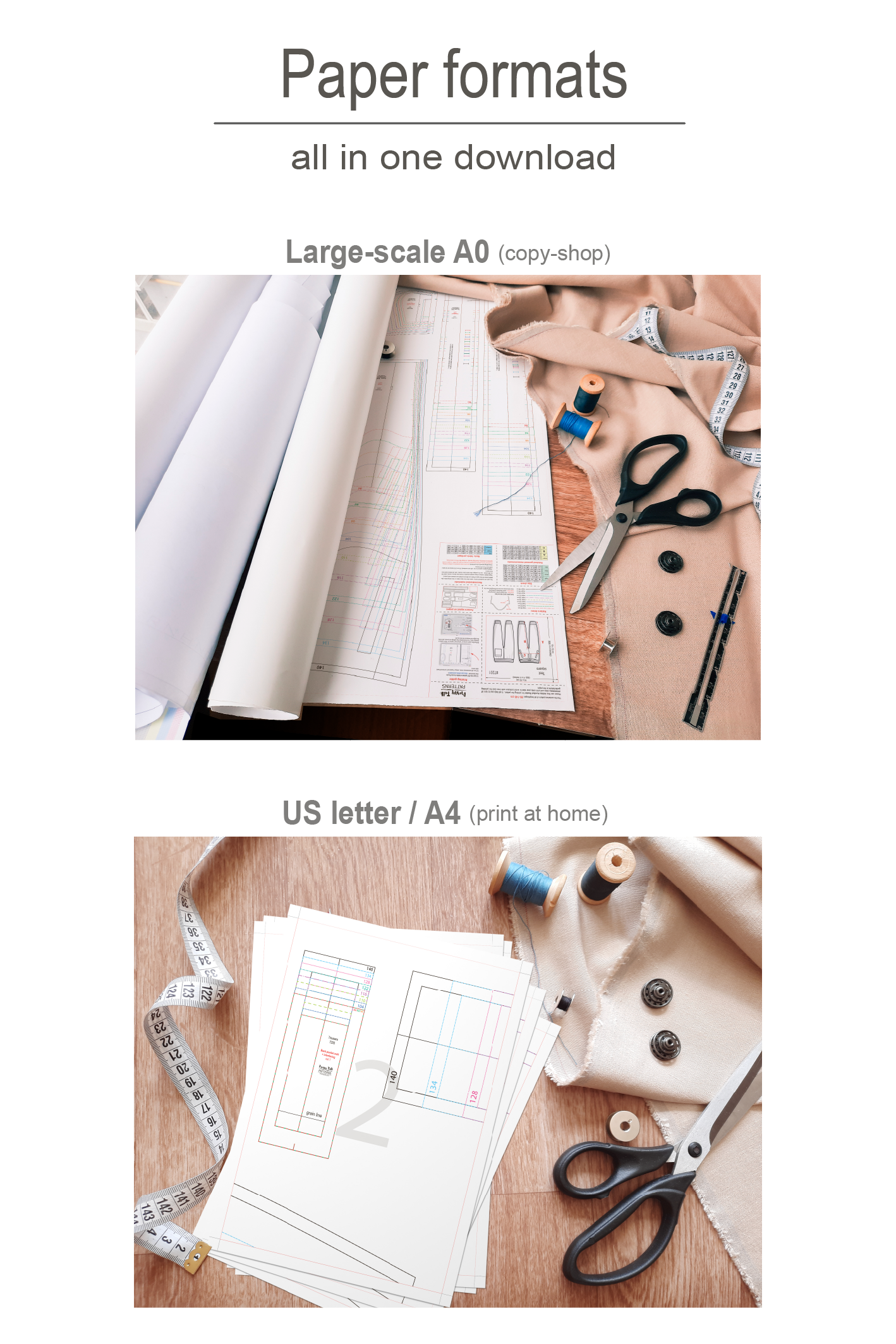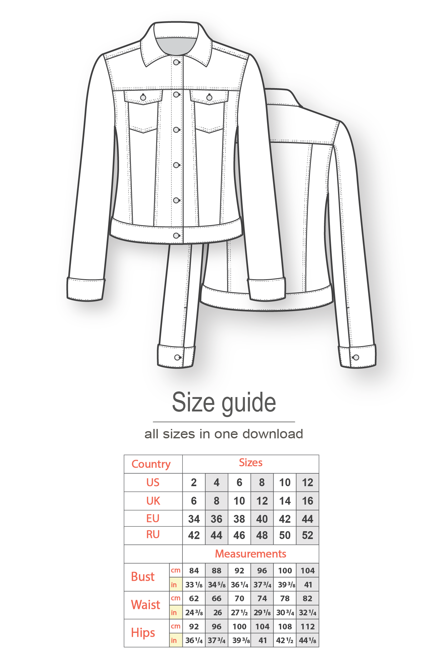 Find the size chart in the the product images. This sewing pattern size range fits to: